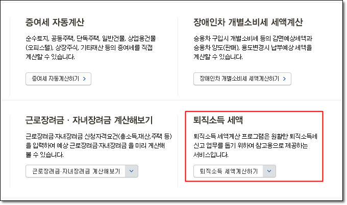 퇴직소득세 계산을 위한 홈택스 세금계산기